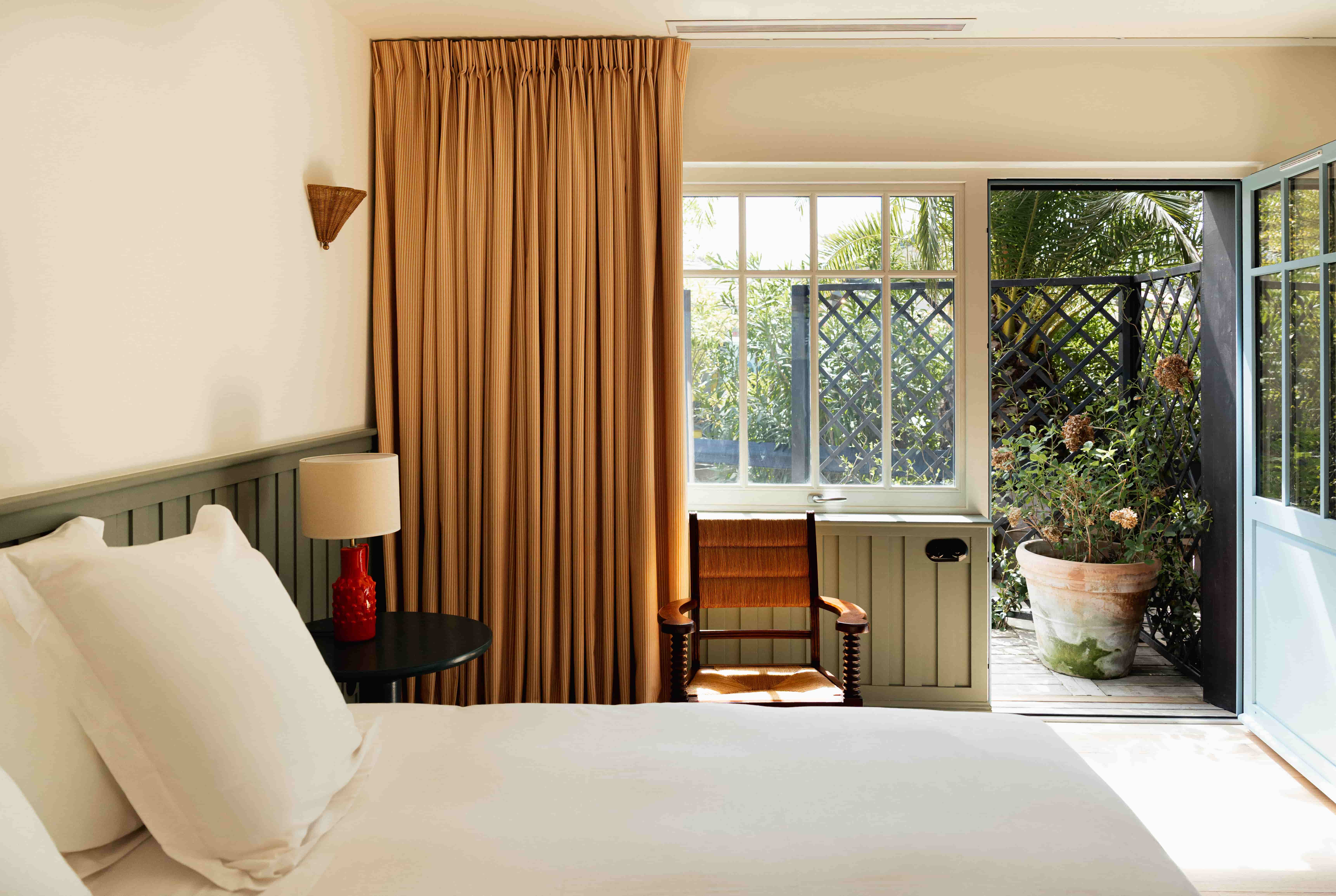 Les nouvelles chambres, pensées comme des chambres de vacances, mêlent soubassements peints, mobilier chiné et matières naturelles.